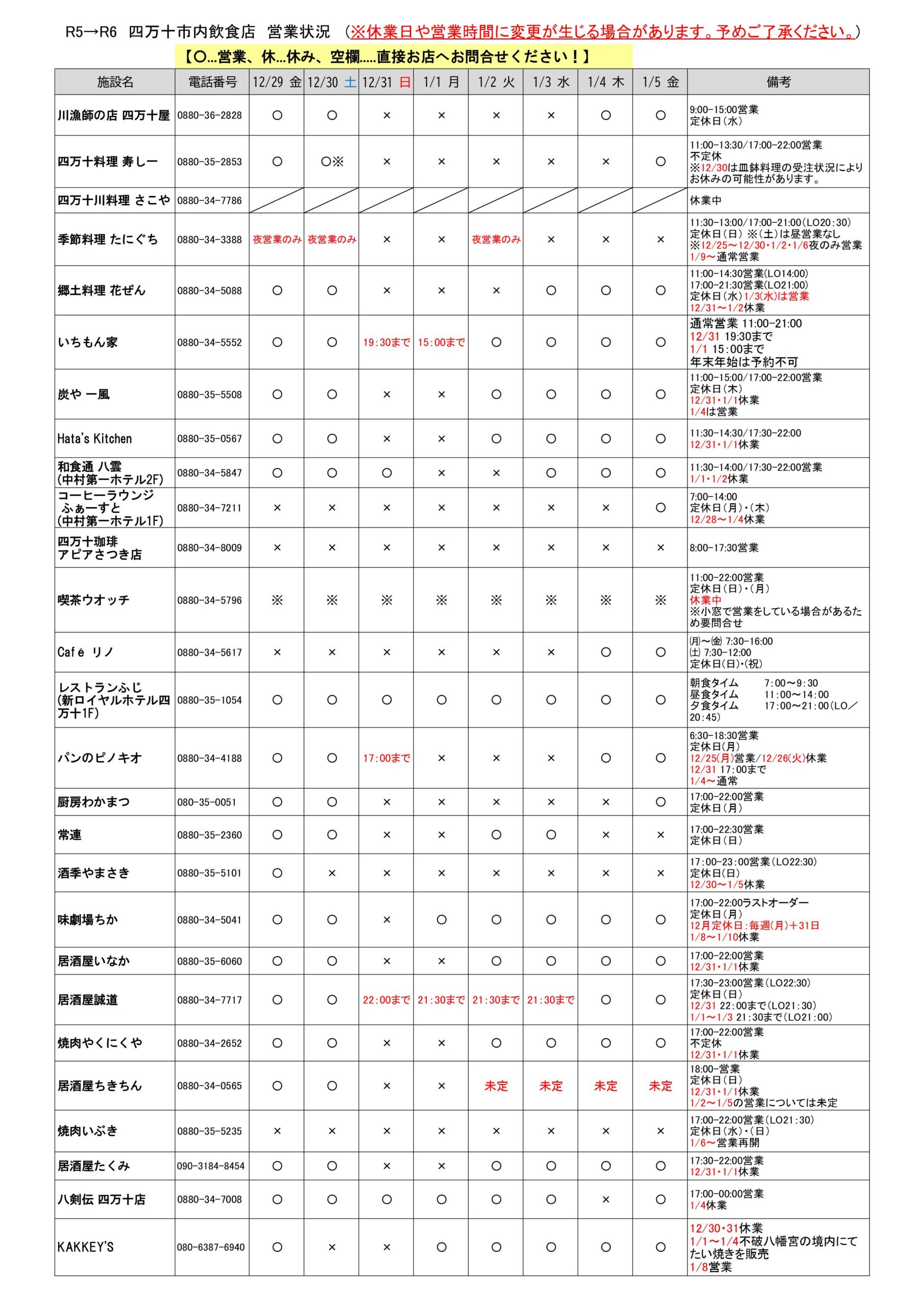 R5年末年始 宿の空きと飲食店営業状況調査 002